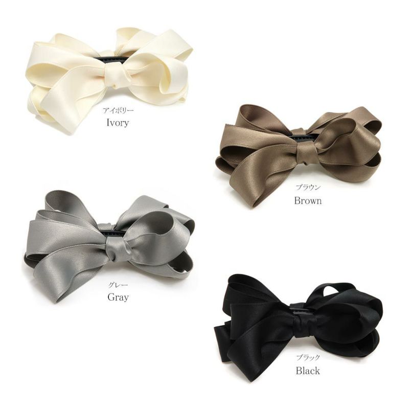 バナナクリップ ボリューム リボン ベーシックカラー 14cm ヘアクリップ