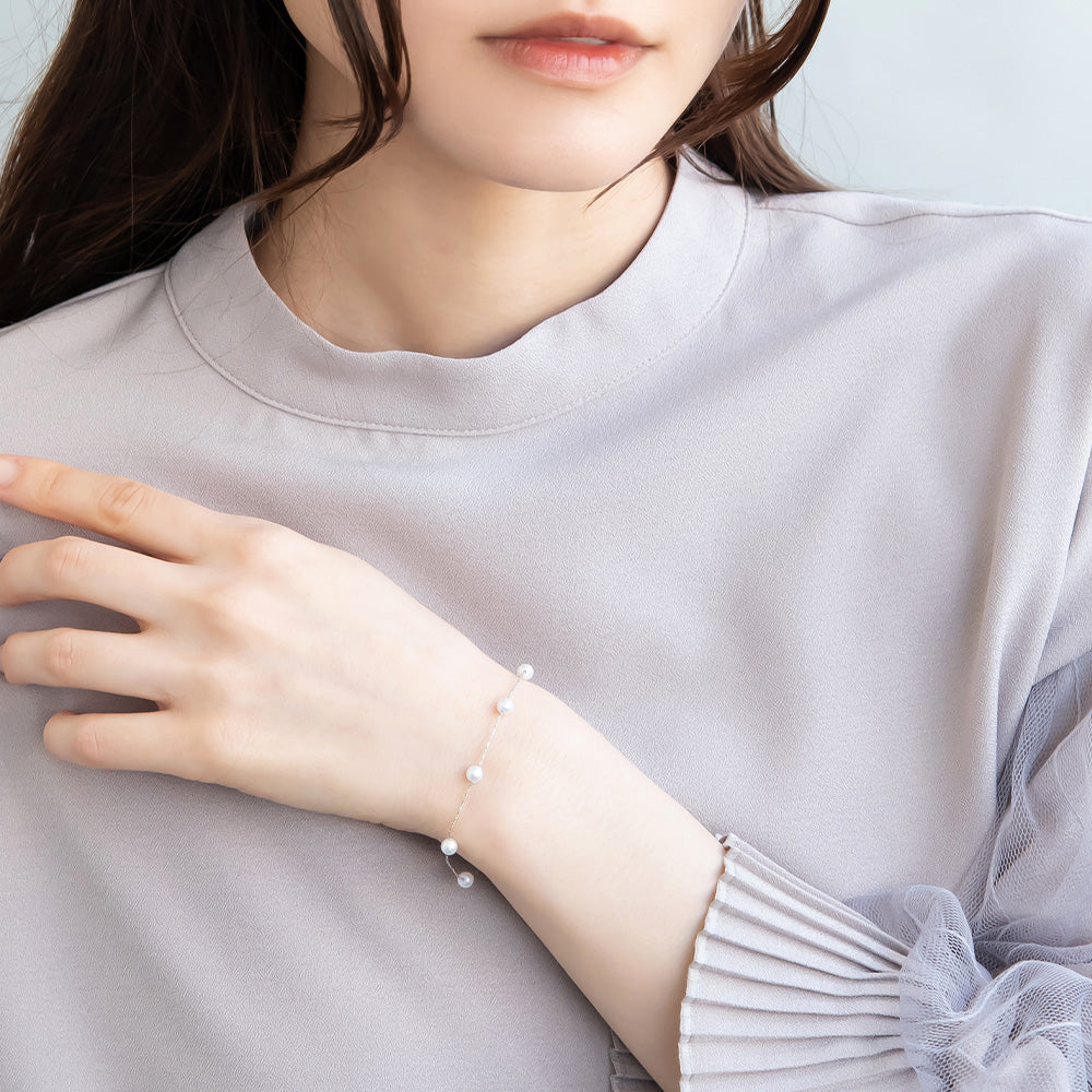 デイリー使いにもパーティーシーンにも併用出来るパール付きブレスレットです。