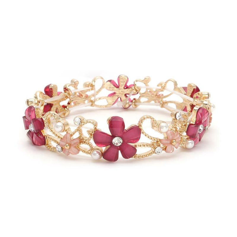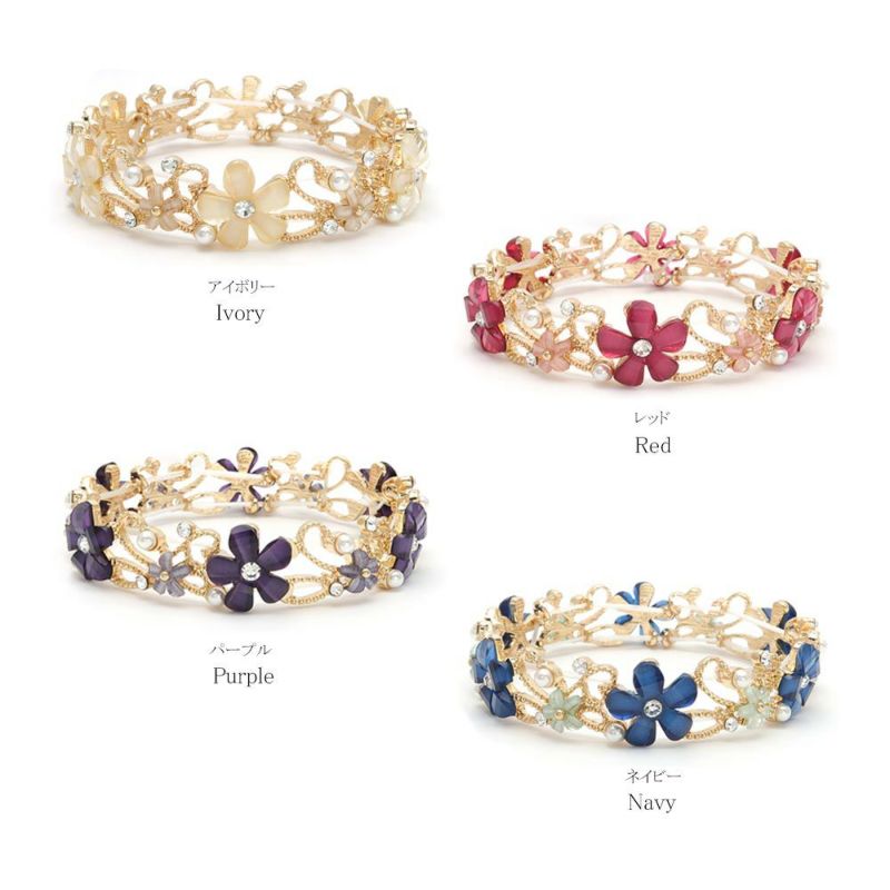 ブレスレット フラワー アクリル ビジュー ストーン ゴムブレスレット