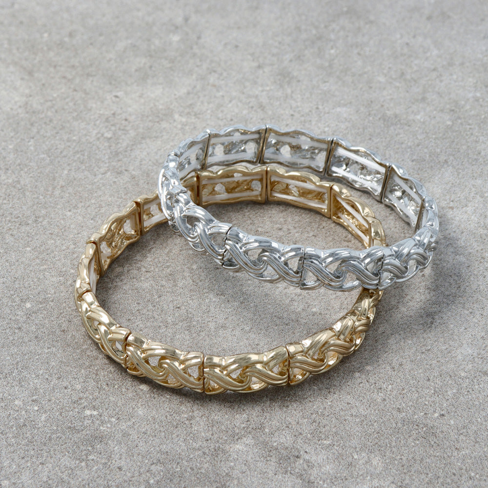 ブレスレット メタル 編み込み風 クロス ゴムブレスレット