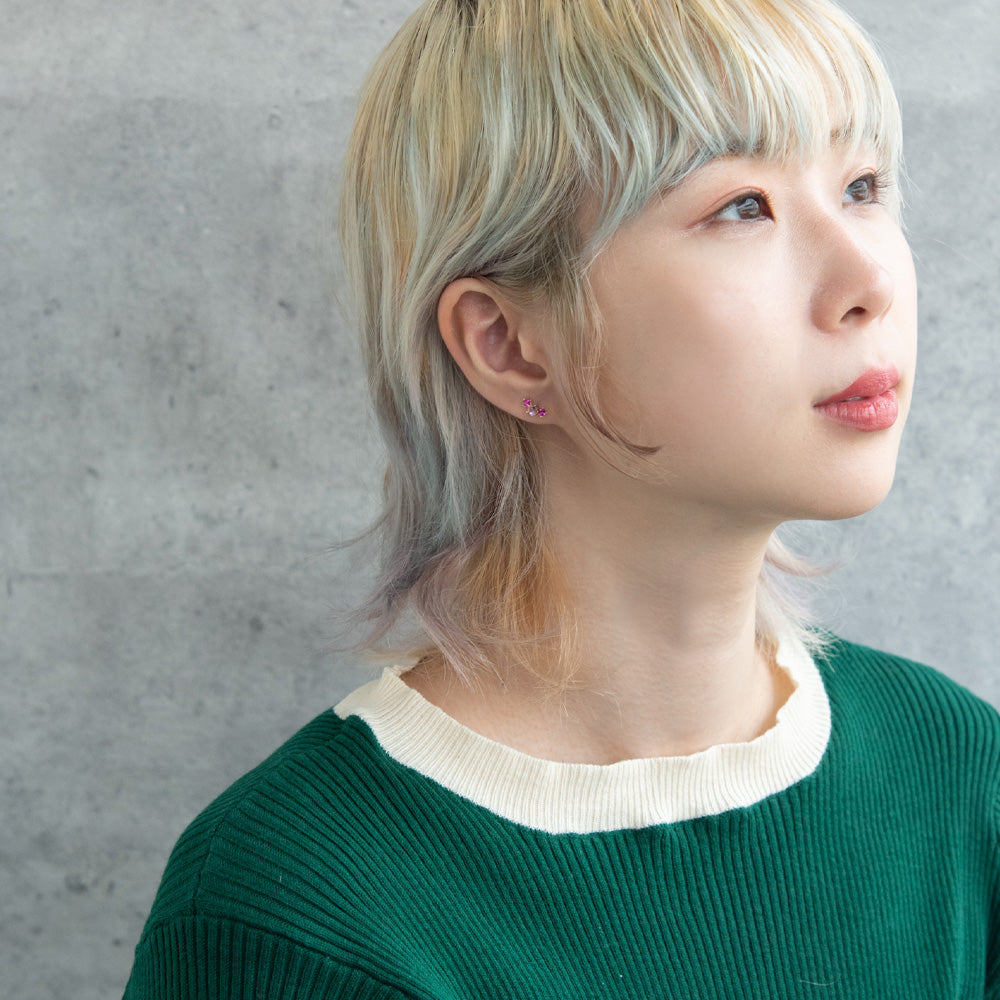 bp0078ちいさなストーンを並べたボディピアスは、耳に沿うようなカーブのかかったデザイン。