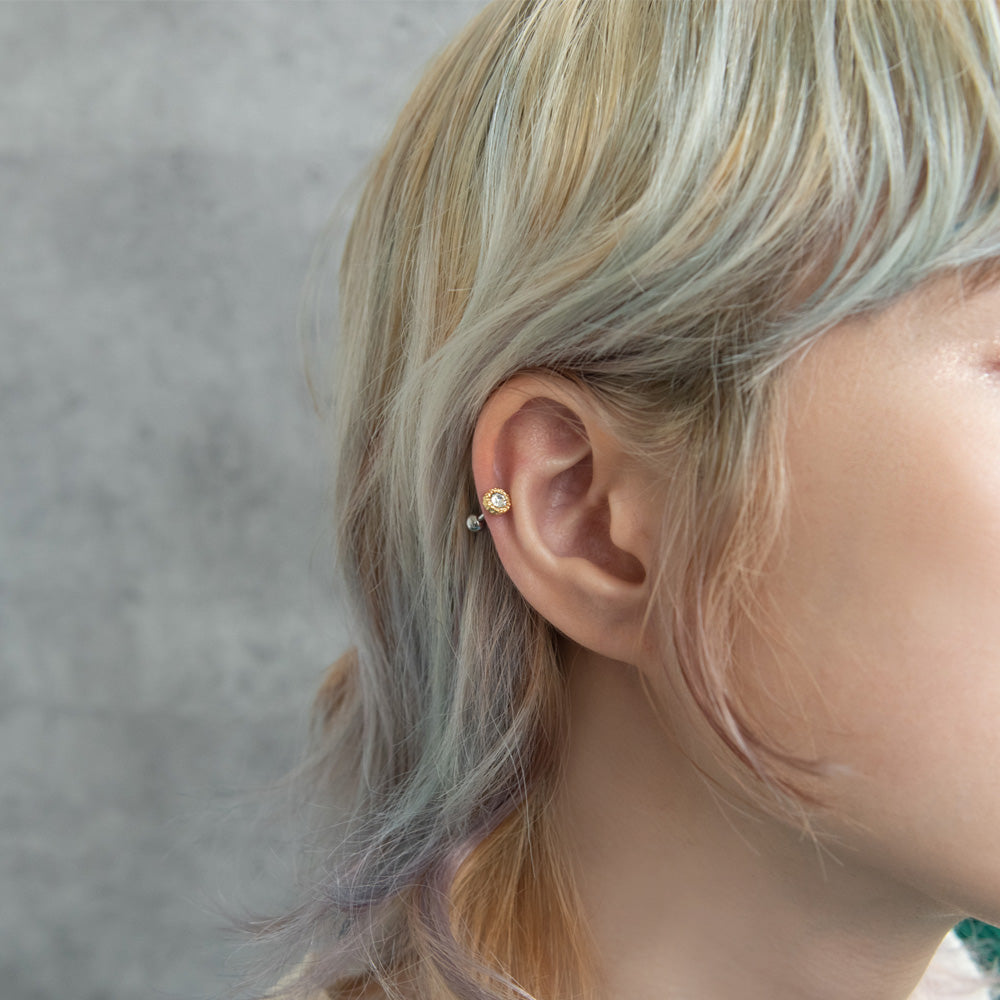 ゲージ(太さ)16G、バーベル(長さ)約6mm、ボールサイズ(直径)約4mm、モチーフ約5mm