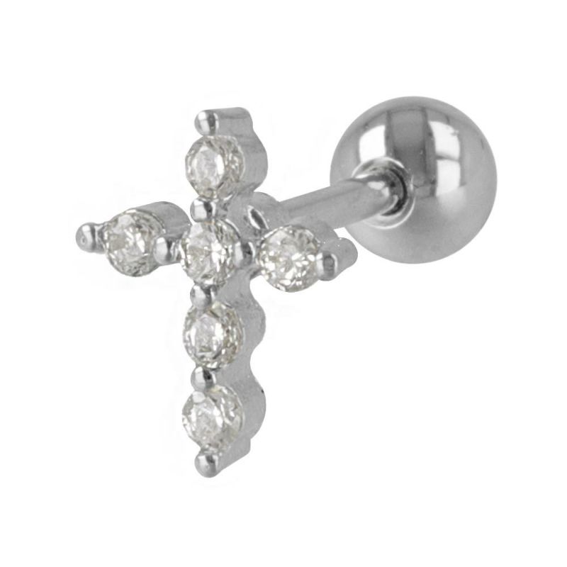 bp0134シンプルなデザインで長く使える、ストーンをあしらった十字架モチーフのボディピアス。