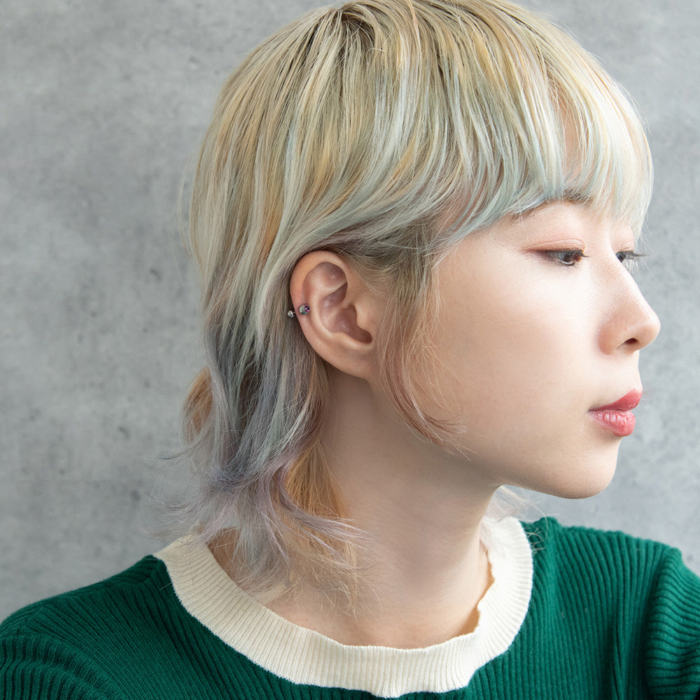 bp0150カラーストーンをボールに埋め込んだ、ひっかかりが少ないデザインのボディピアス。