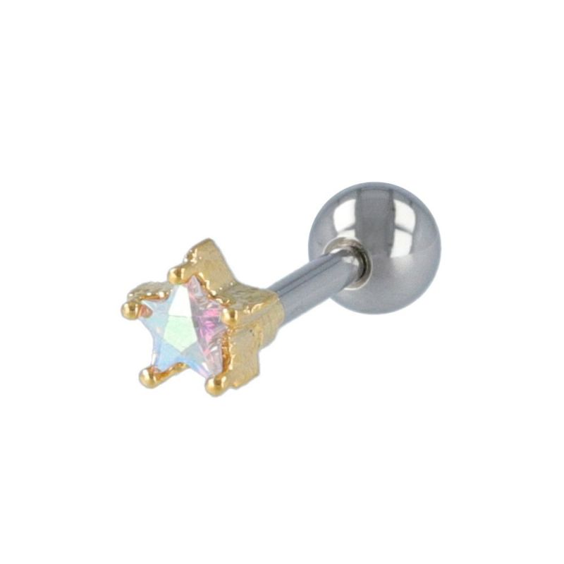 ボディピアス オーロラ ストーン 星 スター ストレートバーベル ネジ式 サージカルステンレス 16G 【1個販売】