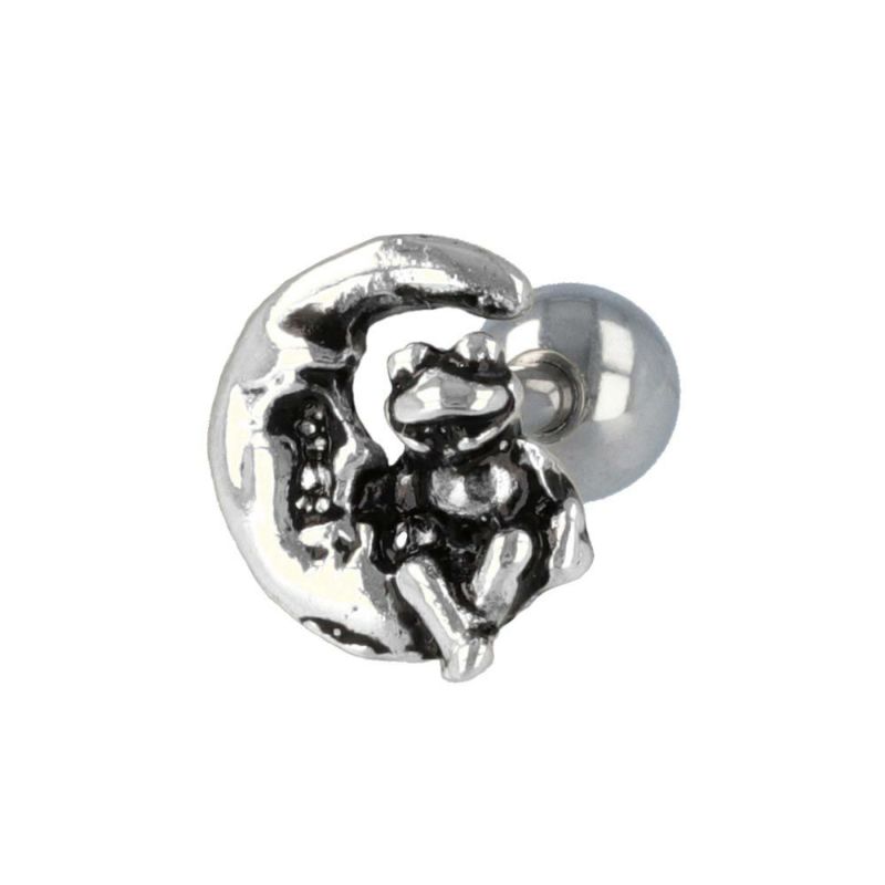 ボディピアス 三日月 ムーン 蛙 カエル ストレートバーベル ネジ式 サージカルステンレス 14G 【1個販売】