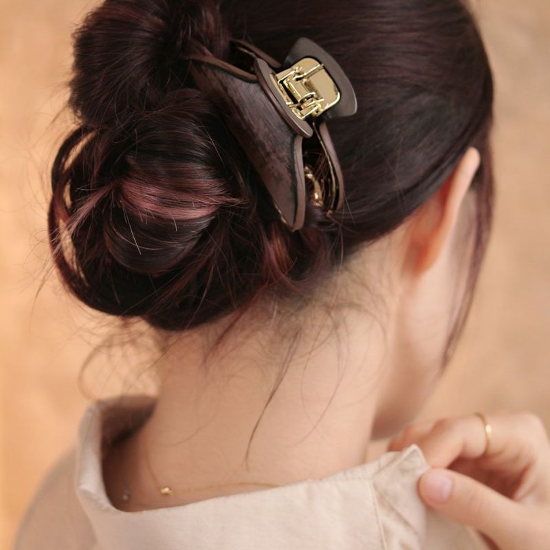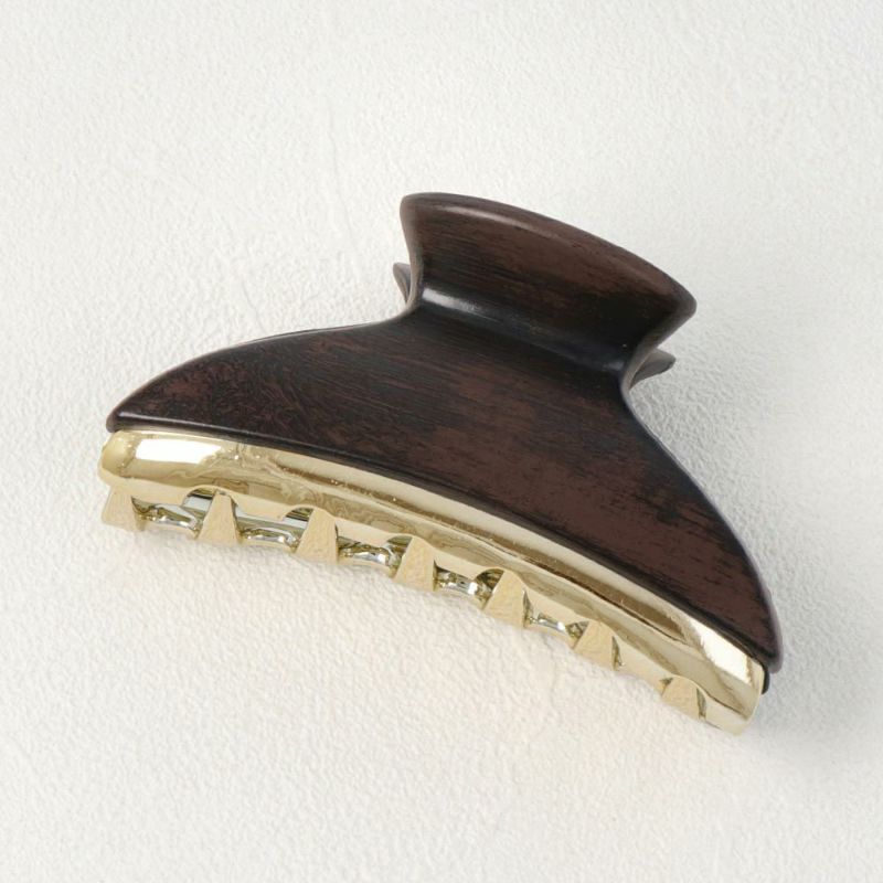 bs0050ナチュラル派さんにおすすめのウッドテイストのバンスクリップ。ウッド風の塗装を施したヘアクリップは、ナチュラルな雰囲気で普段使いにぴったりです。シンプルなまとめ髪もサッとおしゃれなヘアスタイルに。