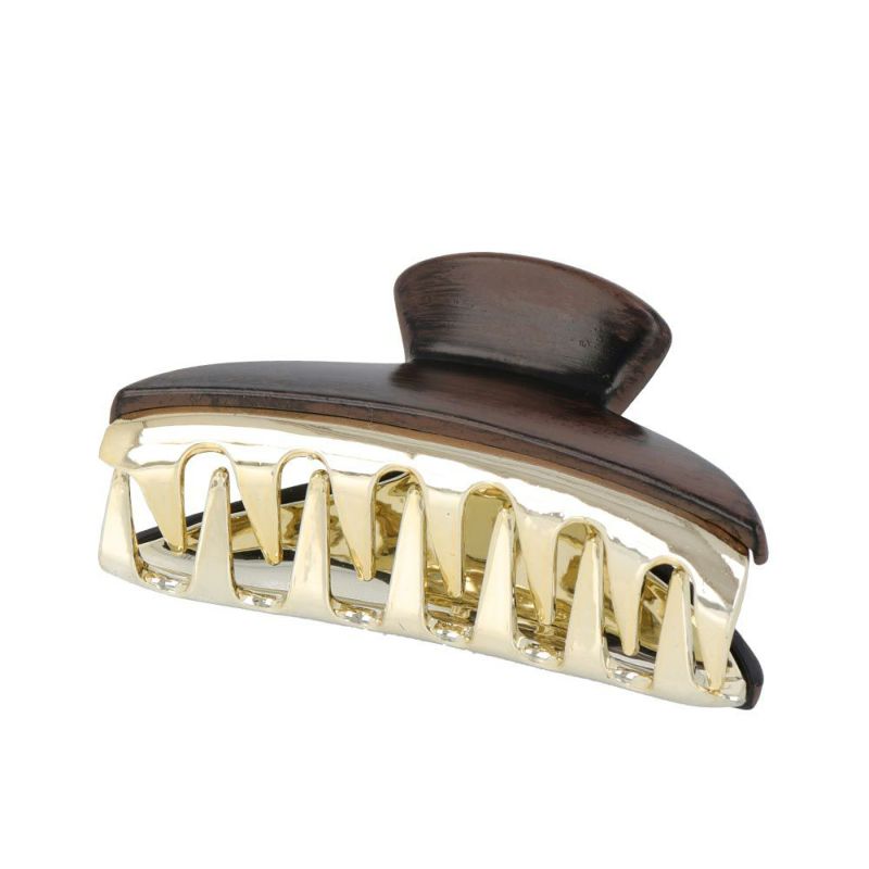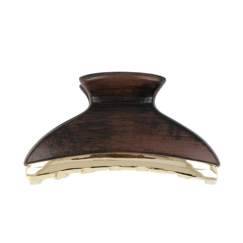 ヘアクリップ ウッド風 ゴールド 9cm バンスクリップ