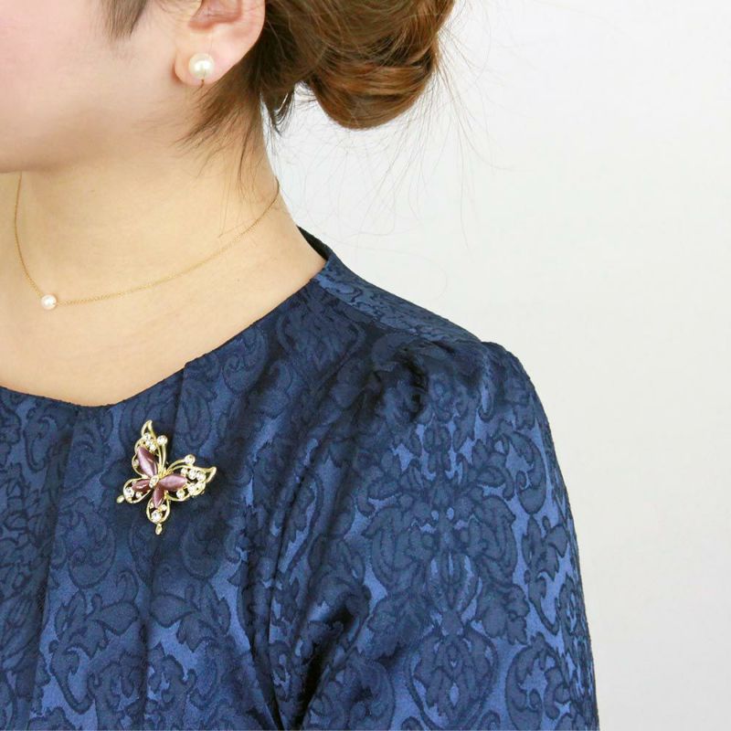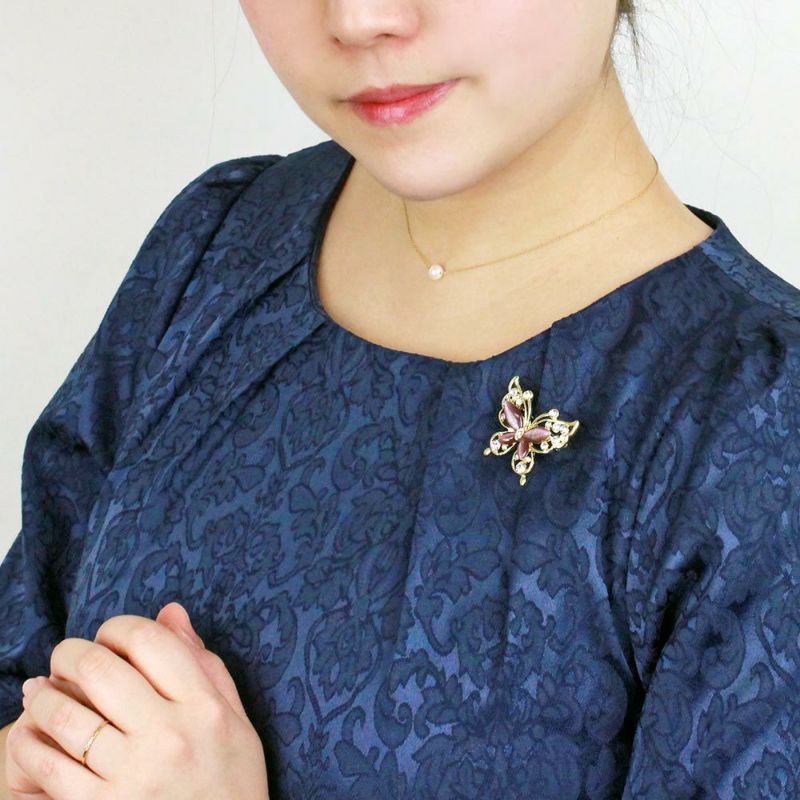 デイリーからフォーマルまで使えるブローチピンは、スーツやジャケットの襟元に華やかさをプラスするだけでなく、セーターやシャツなどのワンポイントに、ストールやマフラーなどを留めたり、バッグにつける等、幅広くアレンジの利くアイテムです。