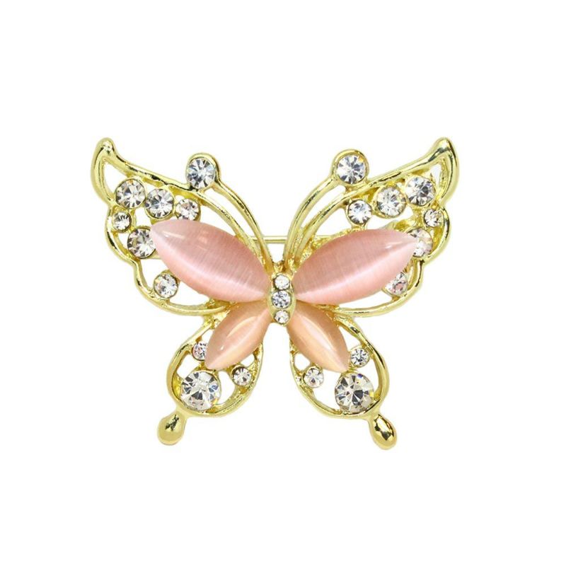 ブローチ 蝶 バタフライ キャッツアイ風 ストーン ブローチピン