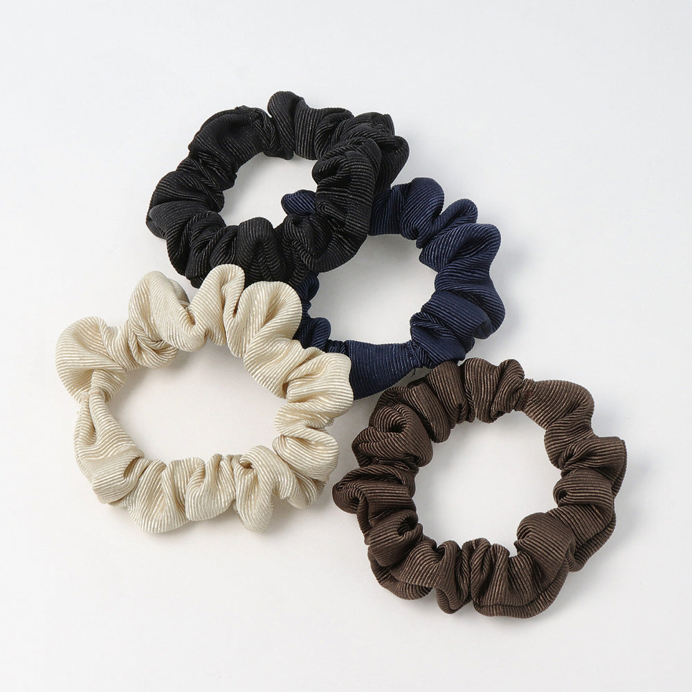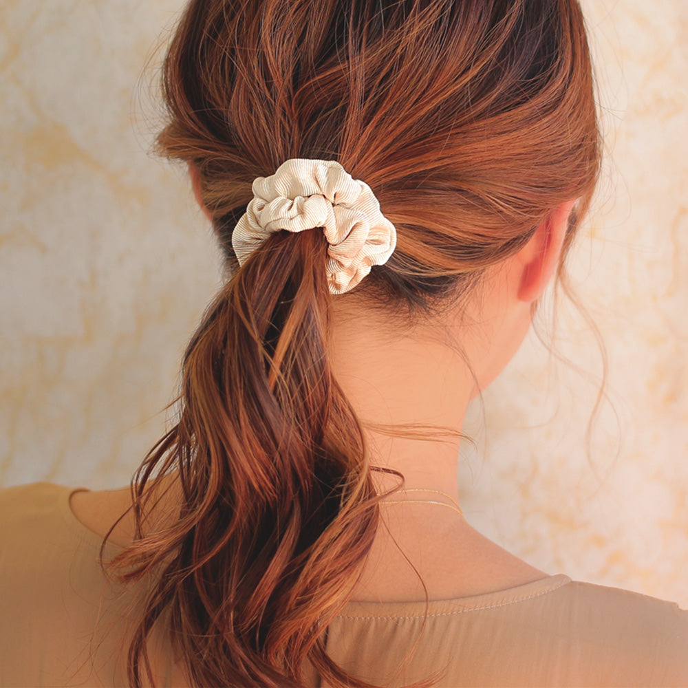 結んだ跡が付きにくい、オン・オフ共につかえるシンプルなカラーシュシュ