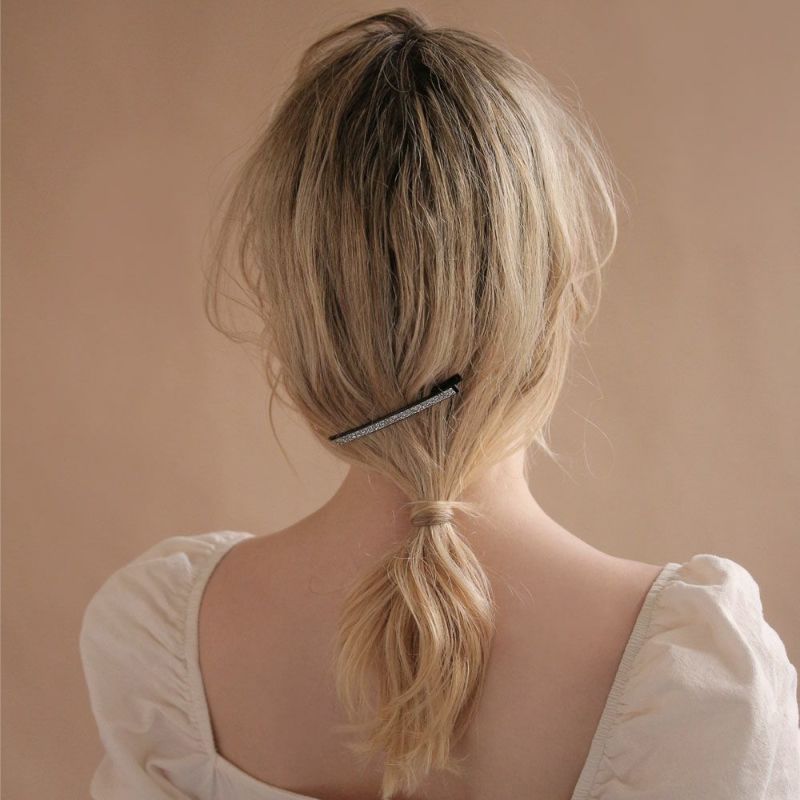 cl0018ラメが上品に煌めくヘアクリップ。華やかだけれどシンプルで大人な印象のデザイン。カジュアルはもちろんシンプルな綺麗めスタイルにもおすすめのアイテムです。