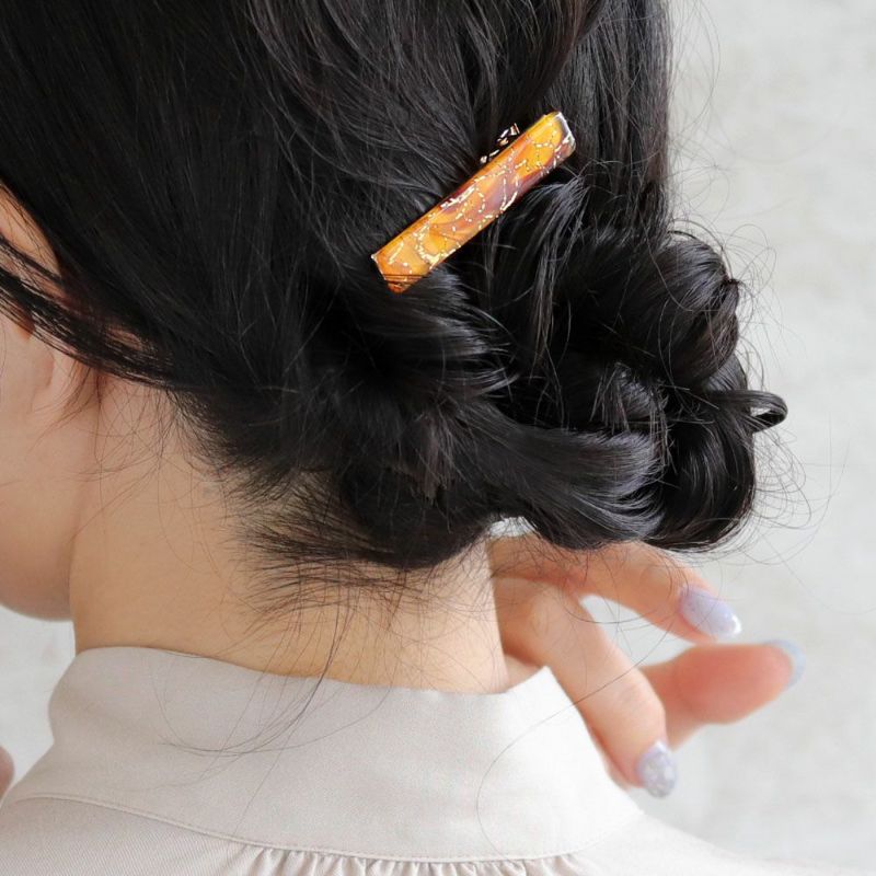 cl0022ゴールドのレース風のフラワー模様が綺麗なベーシックカラーのヘアクリップ。さらっと着けて、大人っぽくこなれ感のあるアレンジに仕上げてくれます。