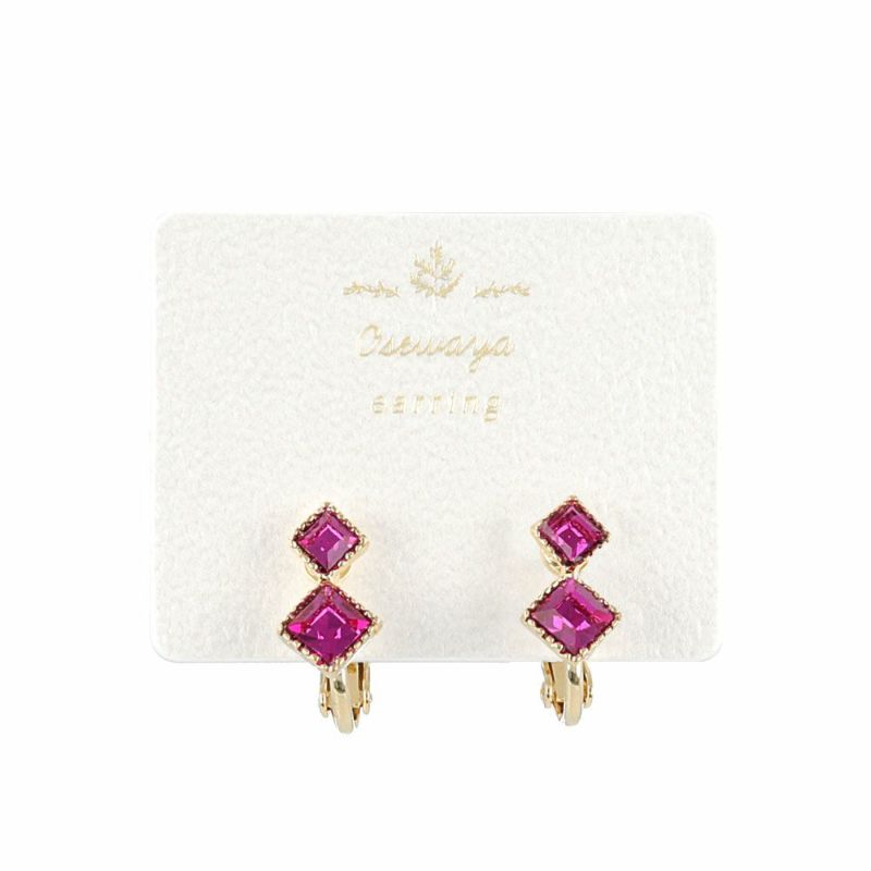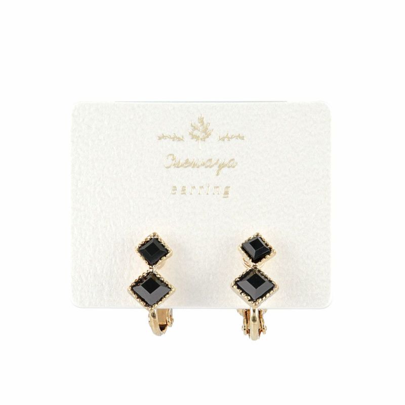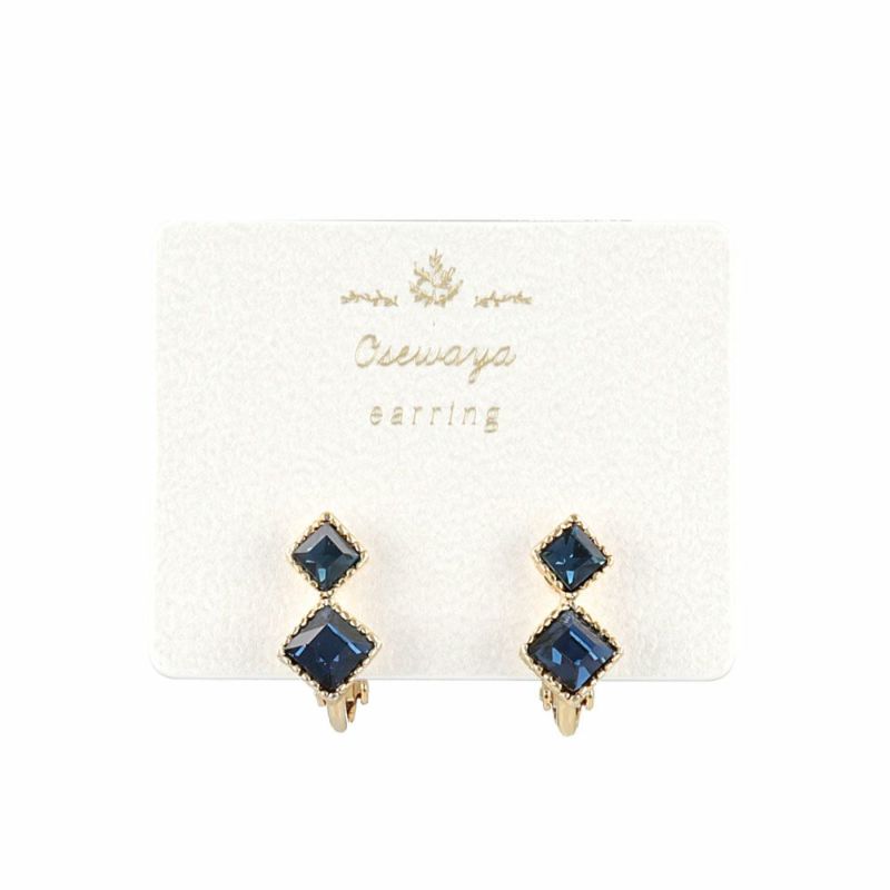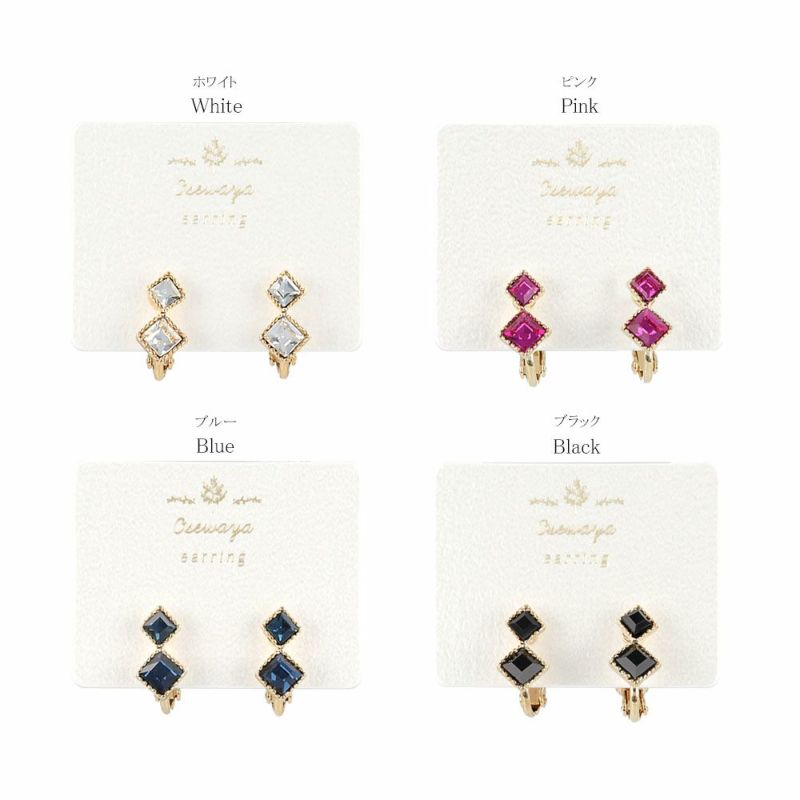 イヤリング ひし形 ストーン ネジバネ式イヤリング