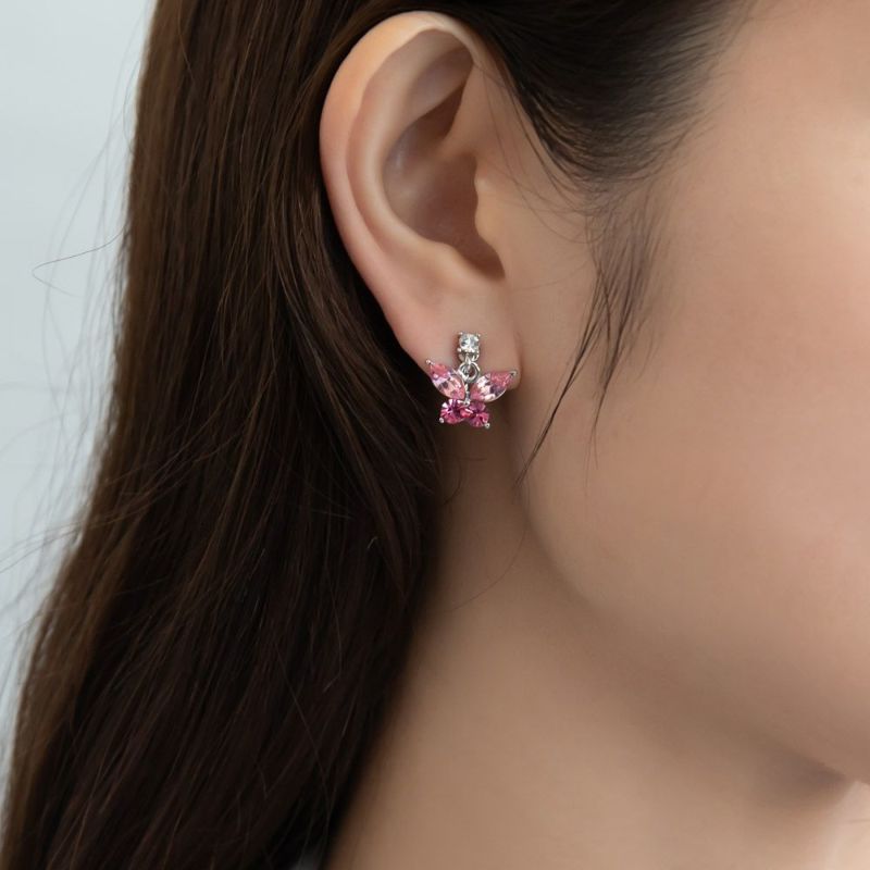 宝石のようなカットガラスの輝きが華やかな蝶々モチーフのイヤリング。着物や浴衣などの和装、パーティーや結婚式などのオケージョンコーデにもおすすめのアイテムです。