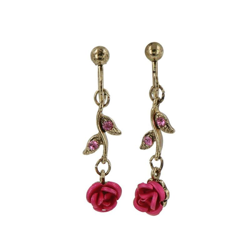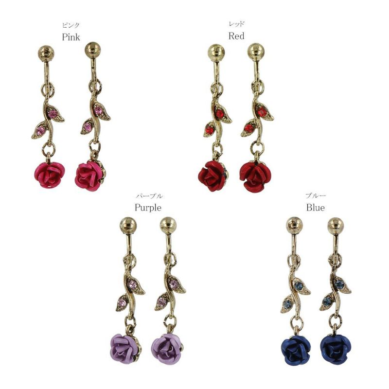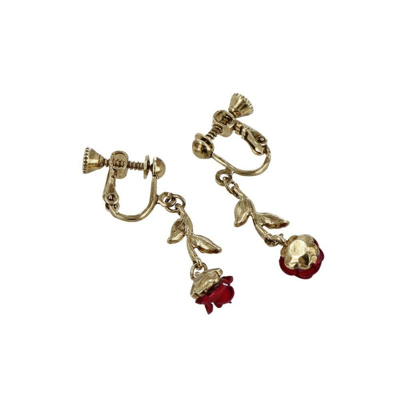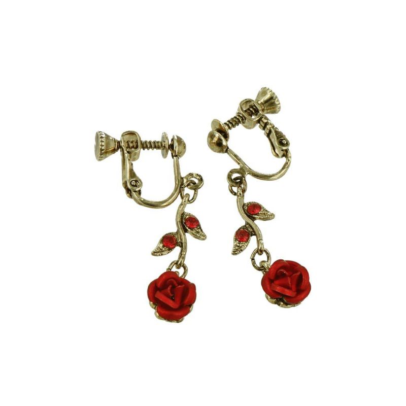 イヤリング ローズ アンティーク ディープカラー ネジバネ式イヤリング