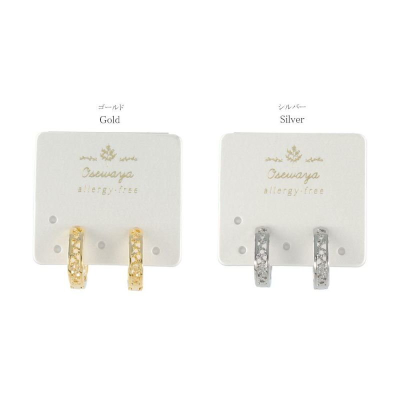人気のデザイン、光の透け感がきれいな透かしメタルの樹脂ピアス。
