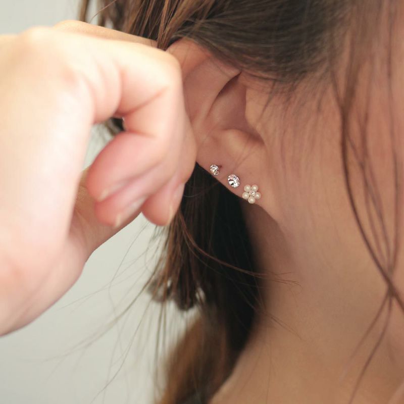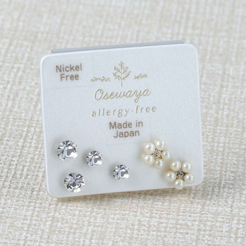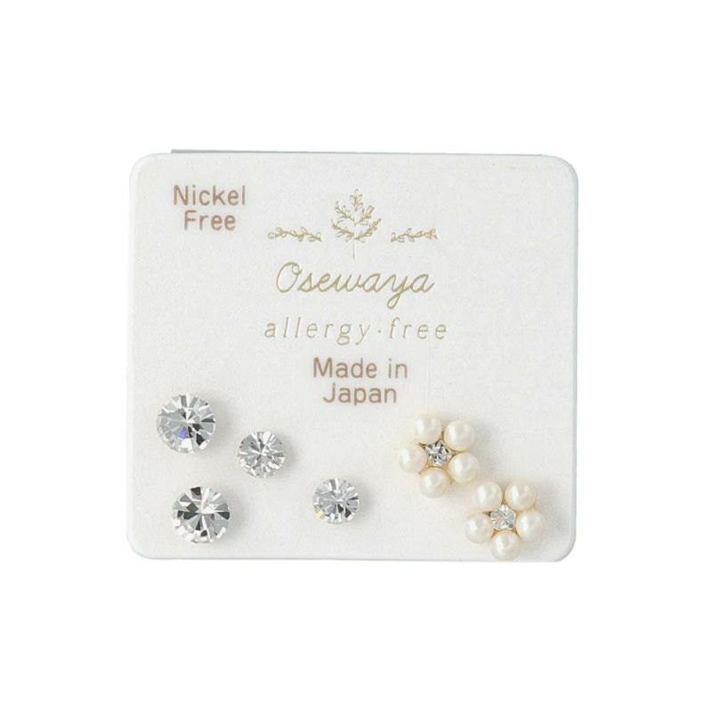 jp0100デイリー使いにちょうどいい小さなお花とストーンの樹脂ピアス。パールとストーンでできたお花モチーフが上品な輝きを放つデザインです。6ピースセットになっているので、その日の気分でお好きな組み合わせが楽しめます。