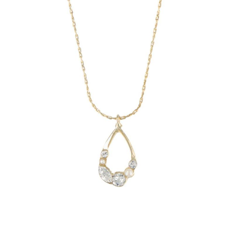 ネックレス ニッケルフリー ストーン パール ドロップ プチネックレス