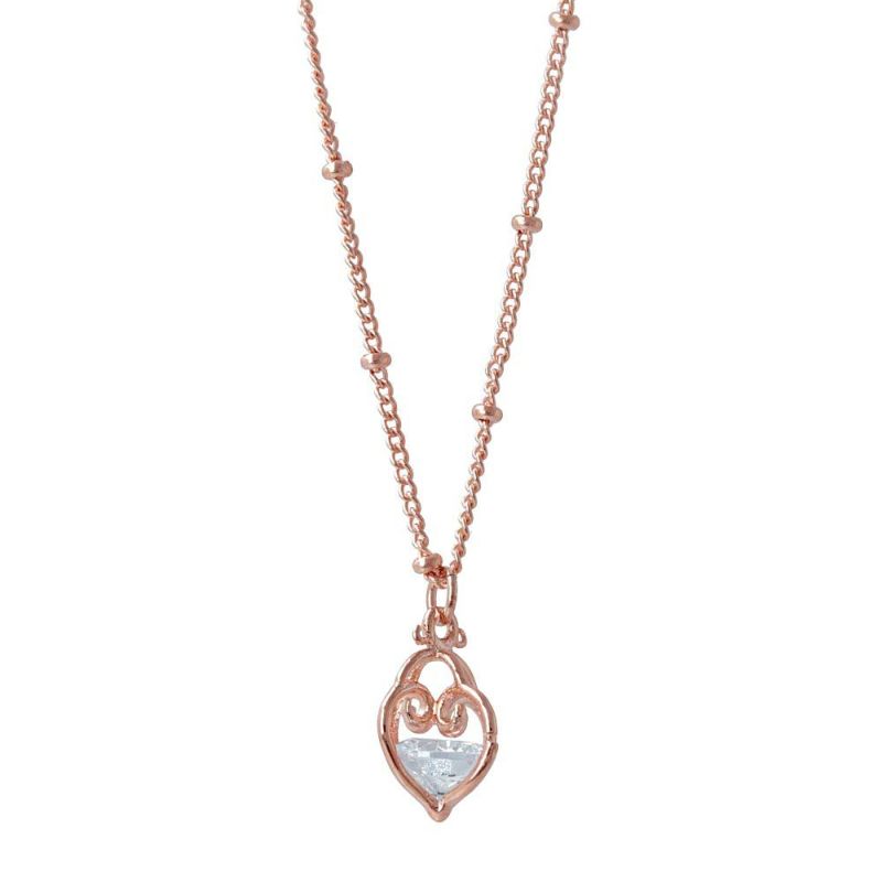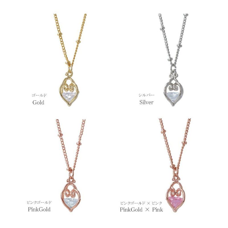 ハートモチーフのなかにキュービックジルコニアが輝く、華やかなデザインのネックレス。