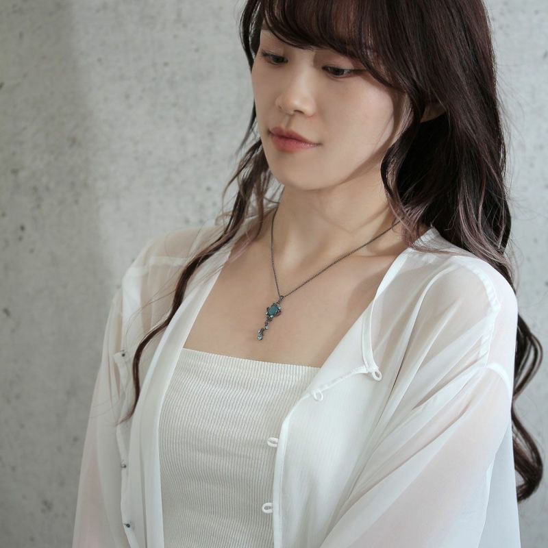 np0121シンプルコーデのアクセントに◎、合成キャッツアイが目を惹く繊細なディティールのプチペンダント。