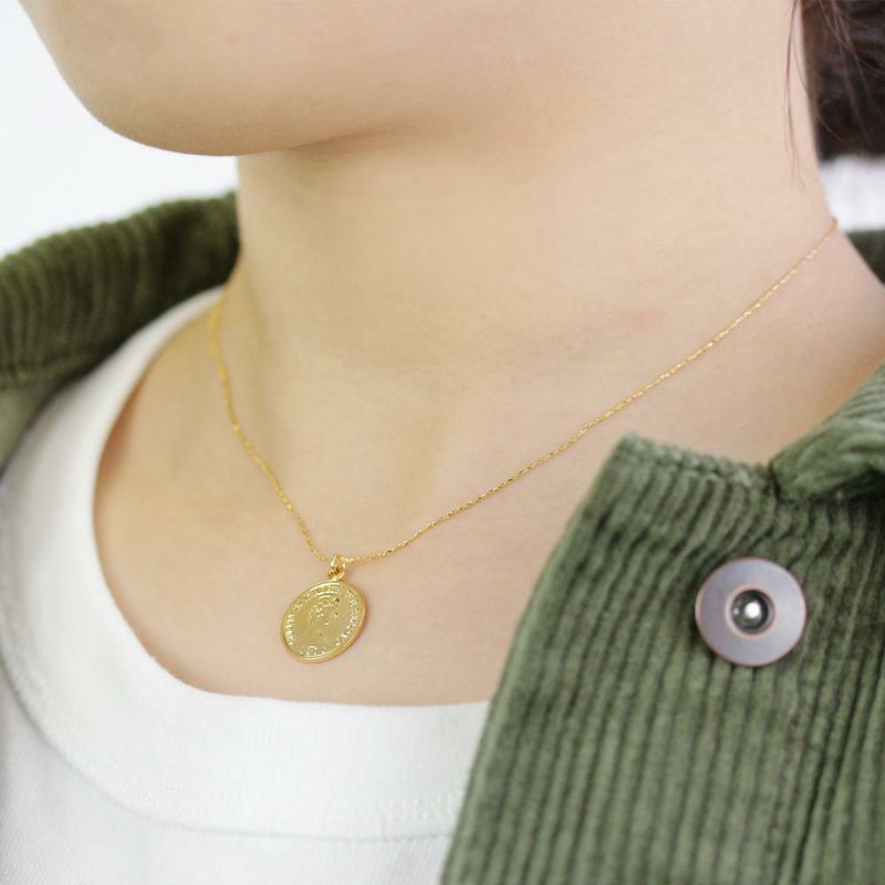 お守りとしても人気のコイン(金貨・銀貨)モチーフのネックレス。華奢なチェーンを合わせたシンプルなデザインで、日常使いにもぴったりです。