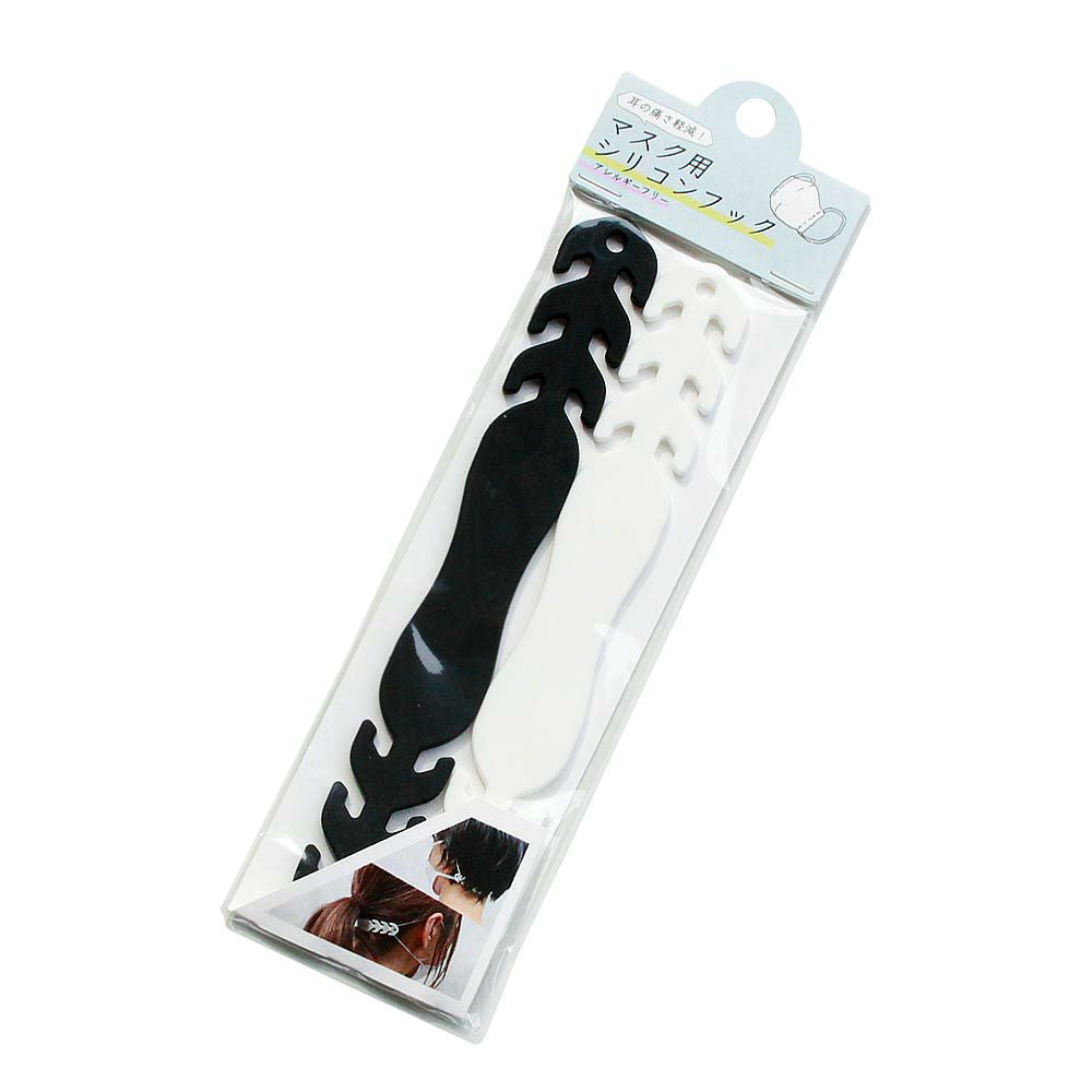 マスク用シリコンフック ブラック×ホワイト アレルギーフリー 3段階調整 2個セット マスクのゴムをひっかけるだけ 耳の痛さ軽減!