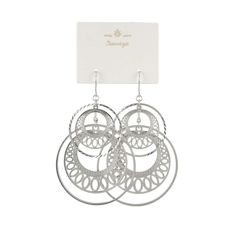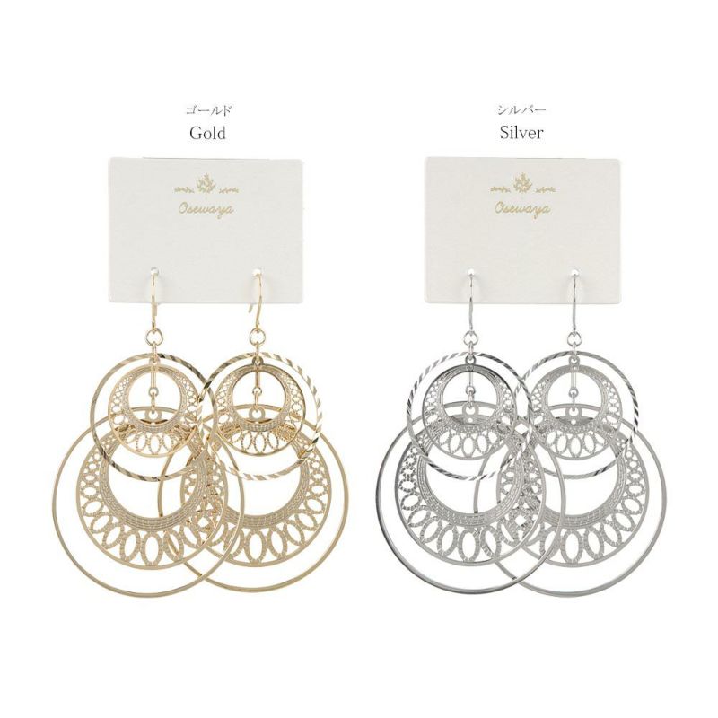 pc0059光の透け感がきれいな透かしのメタルモチーフがゆらゆらと揺らめくフックピアス。ぱっと華やかな大ぶりピアスはコーデのワンポイントにぴったりです。耳につけたときのゆれ感もとっても上品で綺麗なアイテムです。