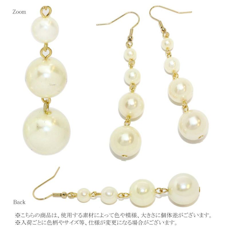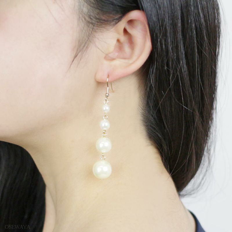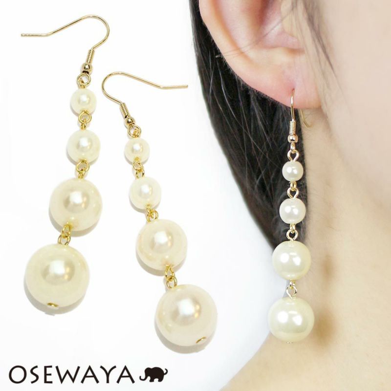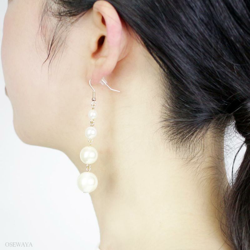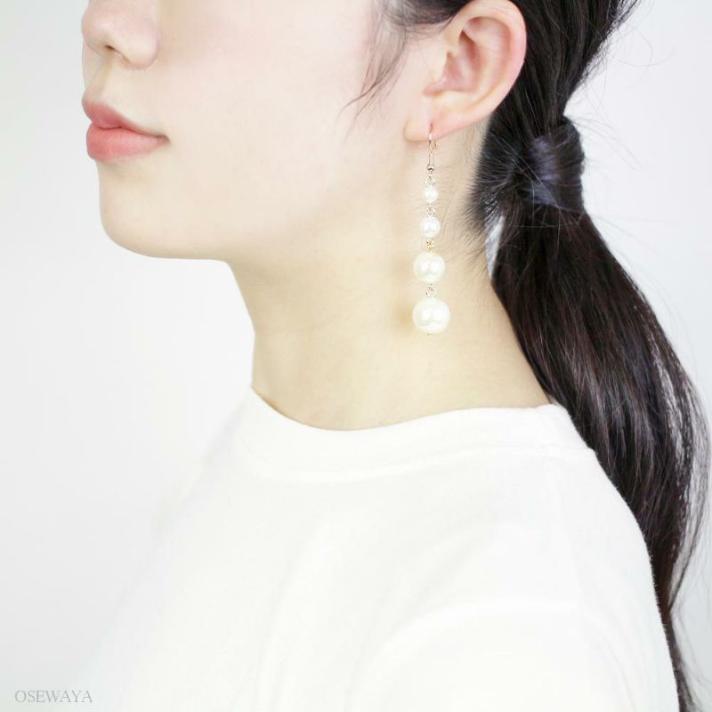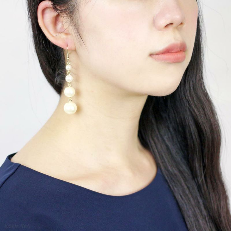 ボリューム感のあるパールがゆれる大ぶりピアスは、どこから見ても可愛いシルエット。ほどよいボリューム感が使いやすく、結婚式などのオケージョンシーンにもマッチします。