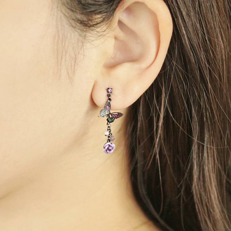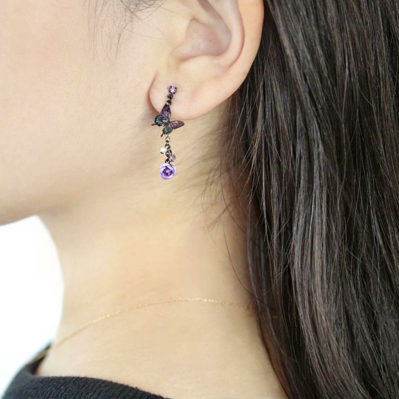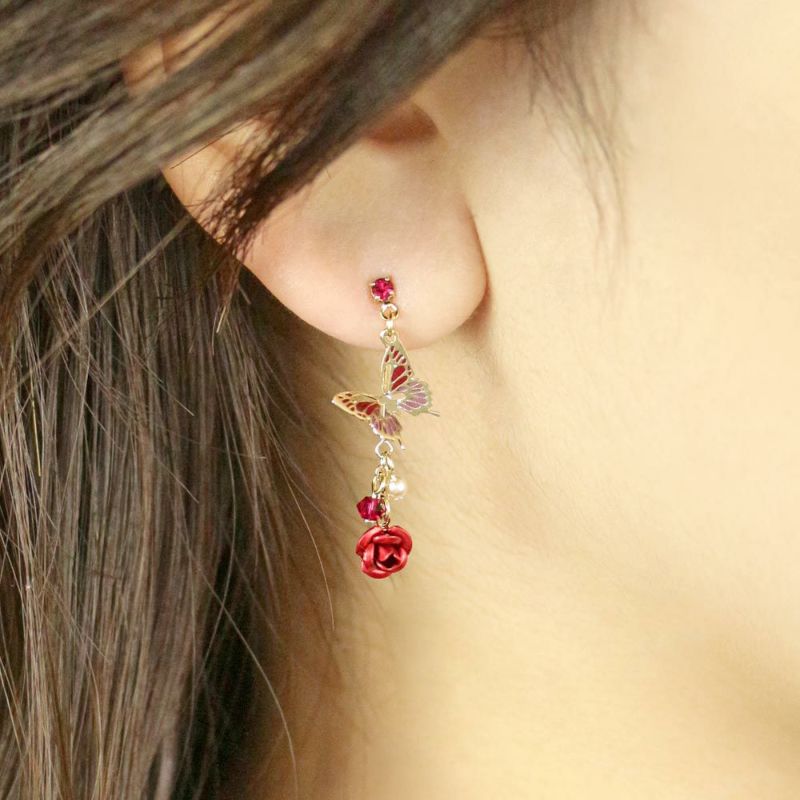 人気の蝶々モチーフのピアス。繊細な細工で描かれた羽根は、絶妙な色合いのグラデーションが美しく華やか。和装との相性も良く、浴衣や着物とのコーディネートもお勧めです。