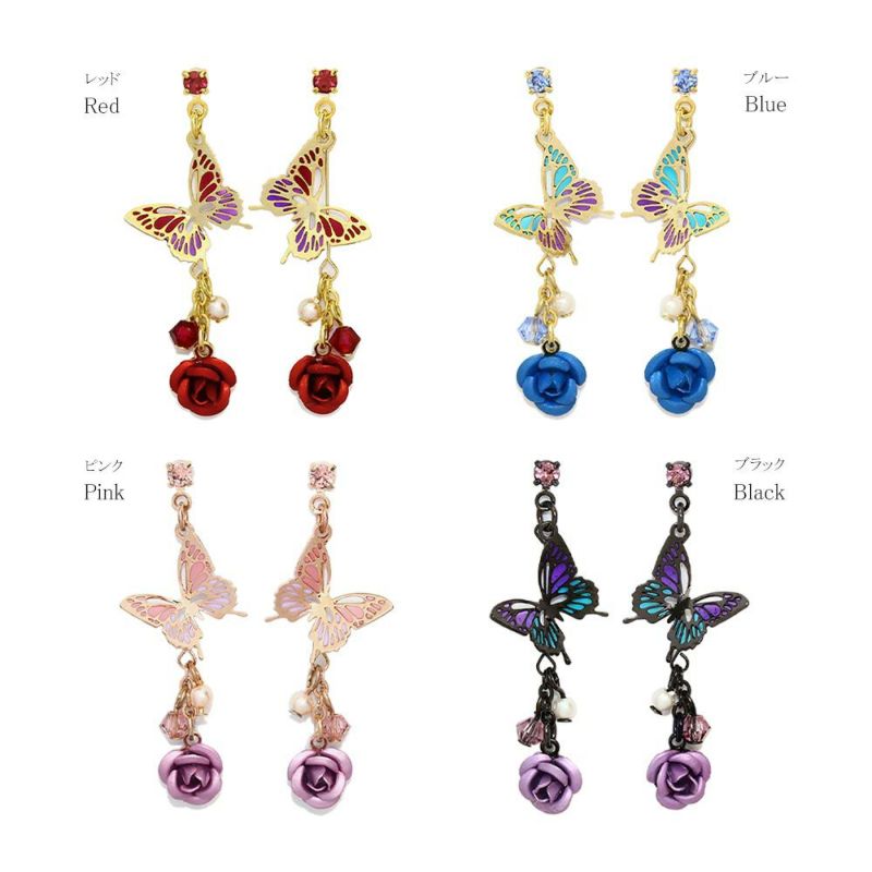 ピアス ニッケルフリー バタフライ ローズ チタンポスト スタッドピアス