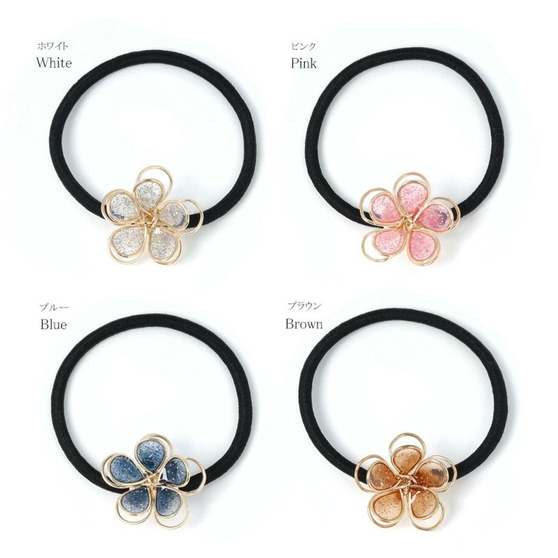ヘアゴム ワイヤー フラワー カラー エポ ラメ ヘアポニー