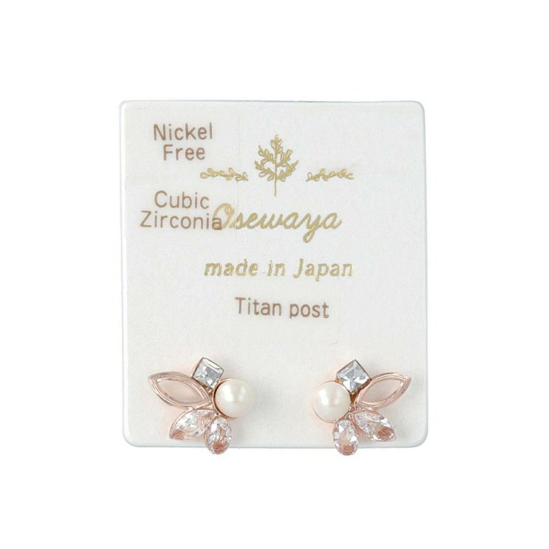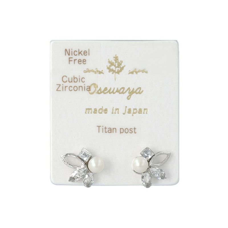 pp0081キュービックジルコニアとパールが耳元でさりげなく輝く小ぶりで上品なデザインのピアスは、使い勝手もよくきれいめスタイルにもぴったりなアイテムです。