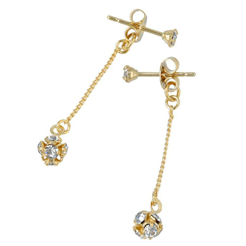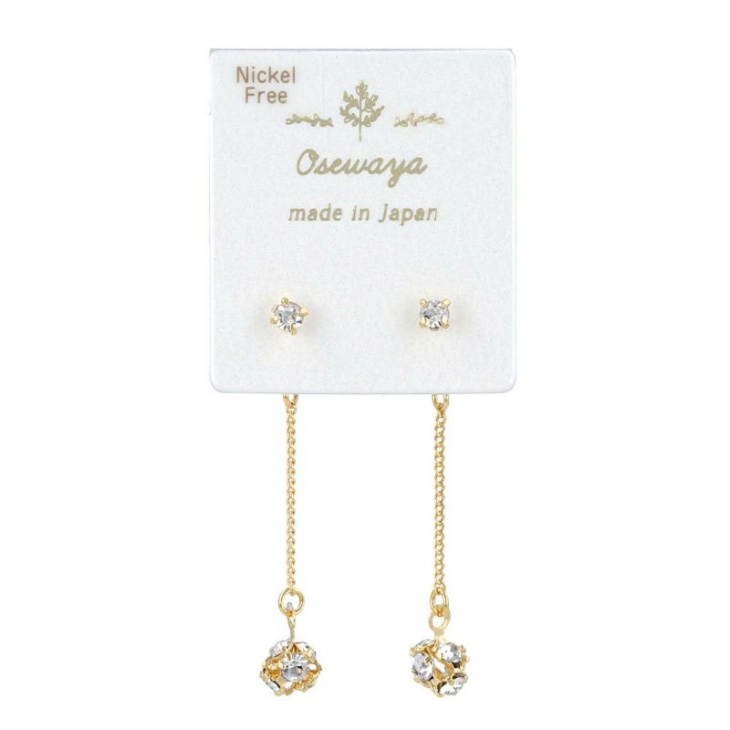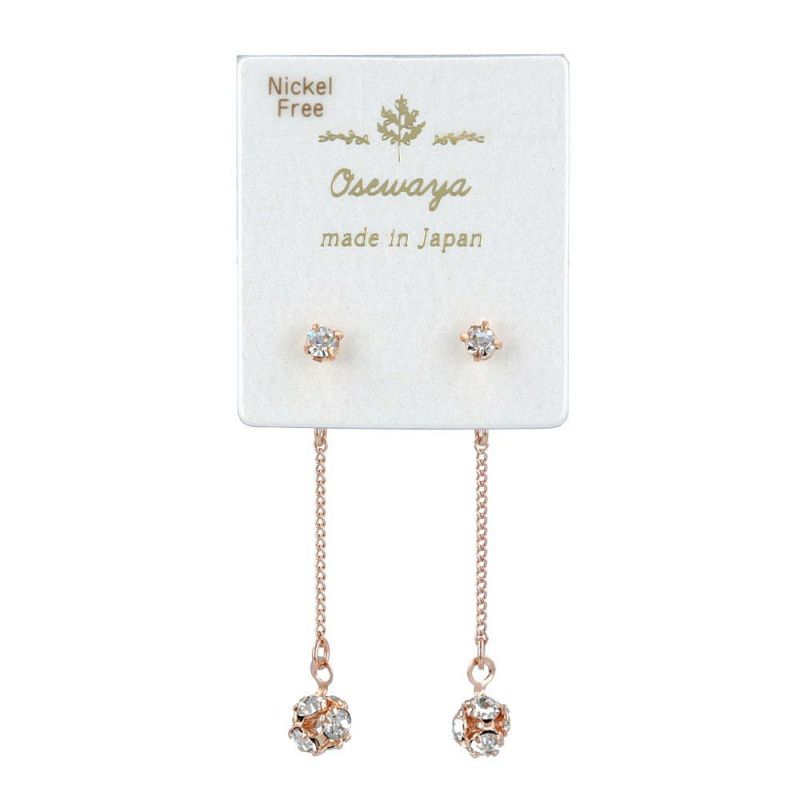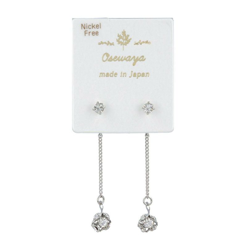 ピアス ニッケルフリー メタル ストーン ロンデルボール チェーン バックキャッチ スタッドピアス