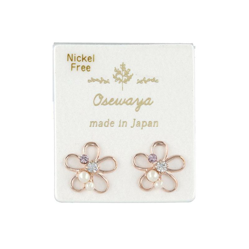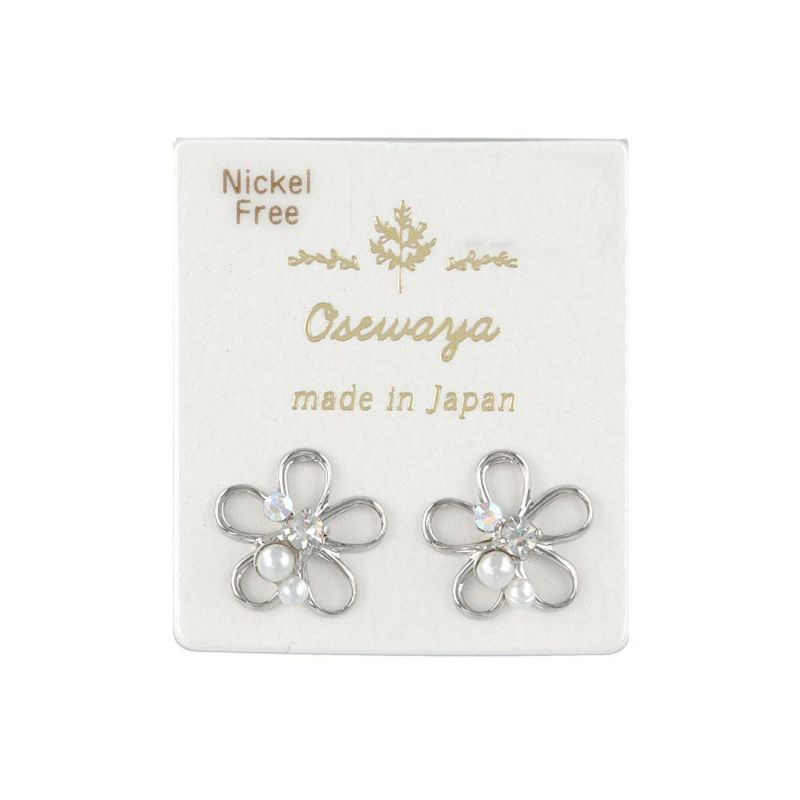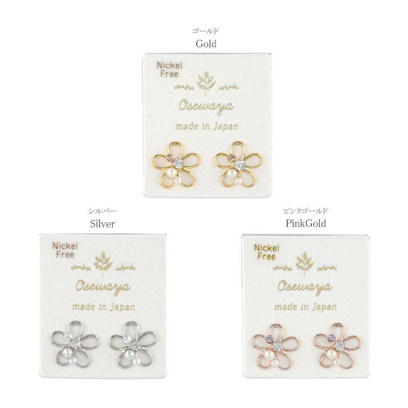 ピアス ニッケルフリー メタル ストーン パール ミニ フラワー スタッドピアス