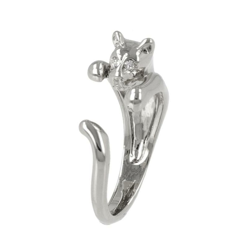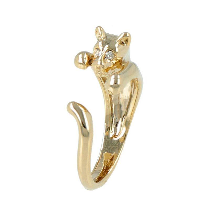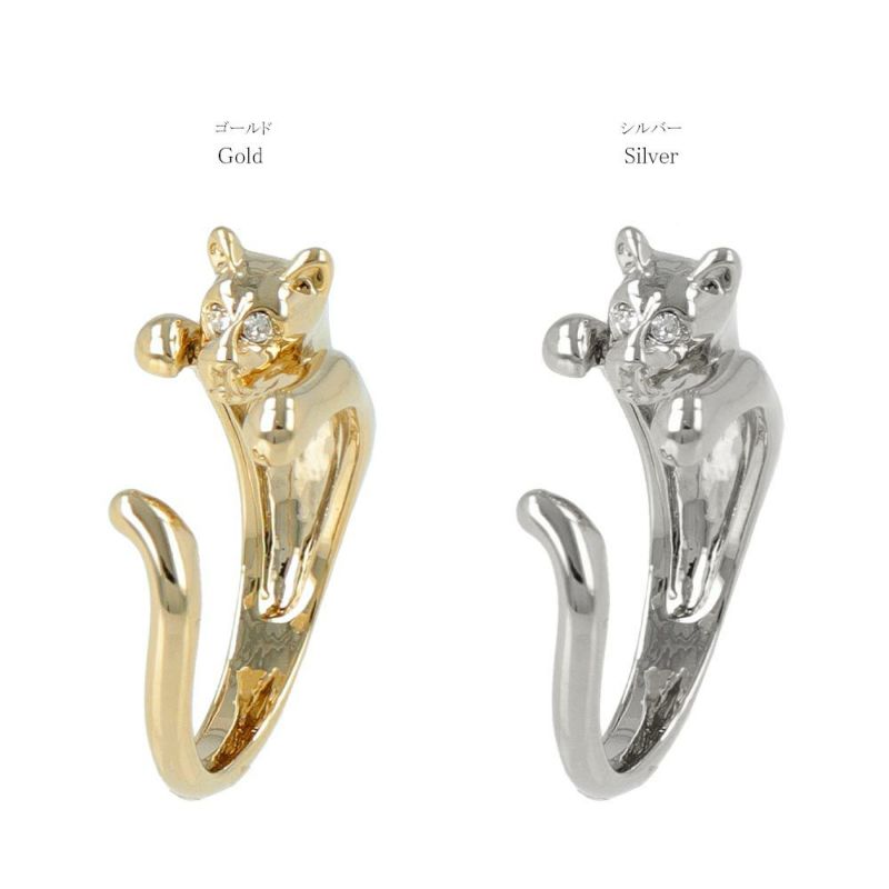 リング ネコ キャット メタル ストーン フリーサイズ 指輪