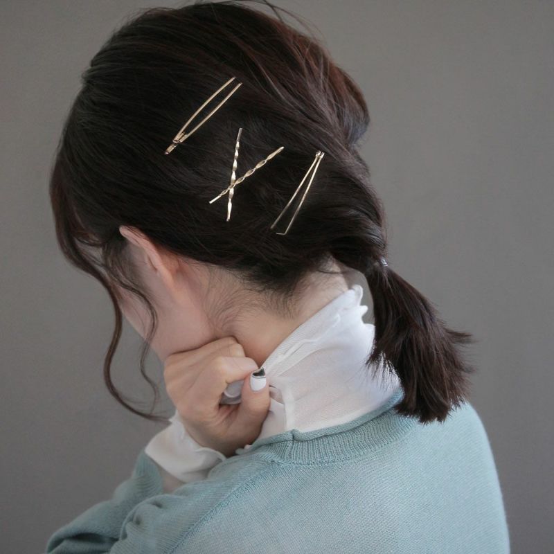 ヘアピン ジオメトリック ライナー ウェーブ アメピン 4本 セットピン