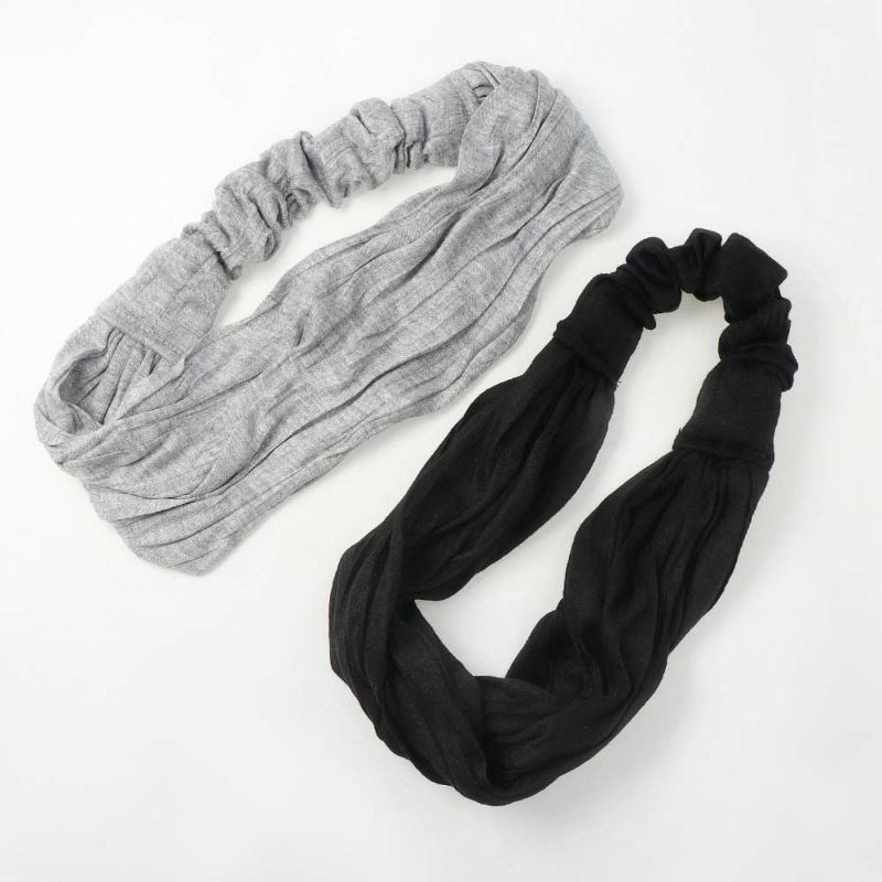 ヘアバンド シンプルカラー しわ加工 ヘアターバン