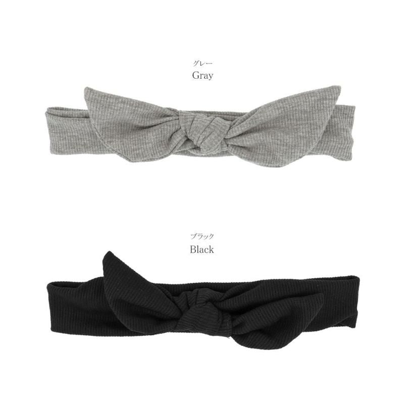 ヘアバンド ワイヤー入りリボン リブ素材 グレー/ブラック