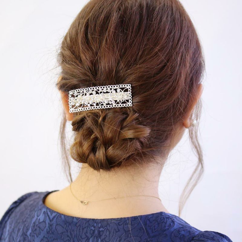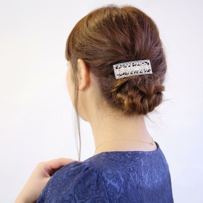 パール使いのヘアアクセサリーは、ちょっとしたまとめ髪も可愛く上品に仕上がります。ラインストーンが華やかさを添える繊細なレースモチーフには、お花や蝶々が隠れています。結婚式やパーティーなど、オケージョンシーンのヘアアレンジにもおすすめです。