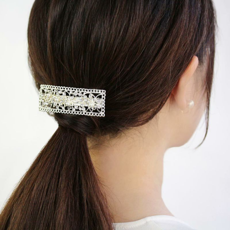 バレッタ フラワー バタフライ ストーン パール レース スクエア
