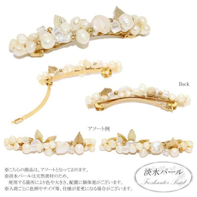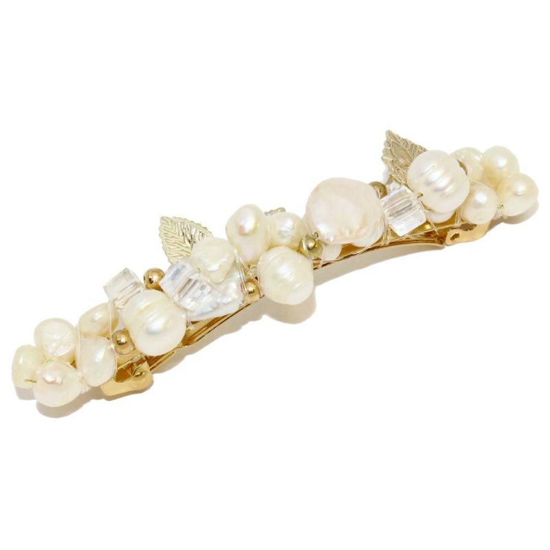 Classy バレッタ 淡水パール リーフ 9cm 薄型バレッタ