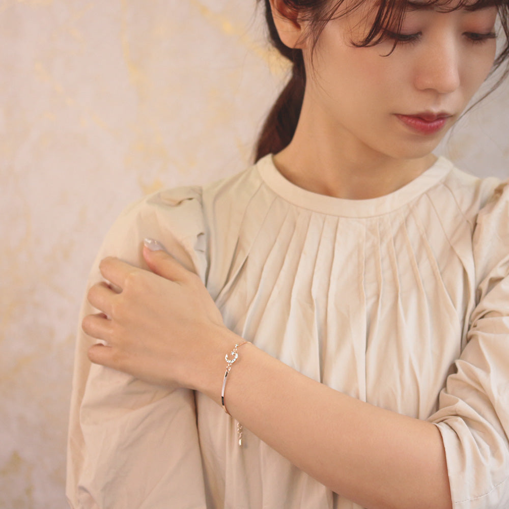 さりげないモチーフに曲線のメタルが女性らしい印象、細すぎず太すぎずのちょうどいいボリューム感。