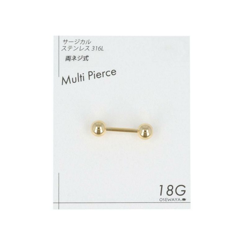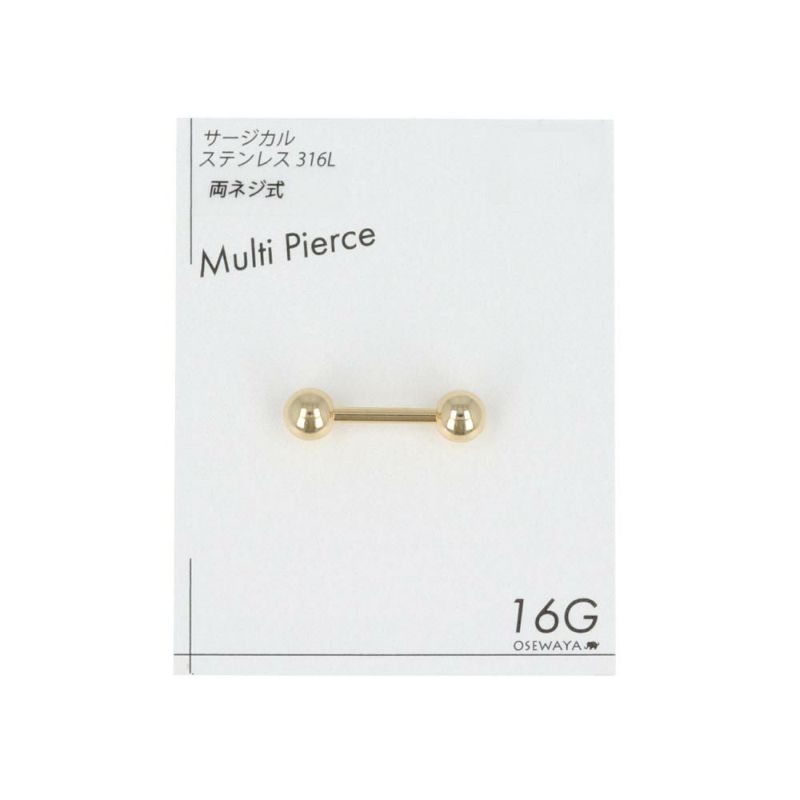 ボディピアス サージカルステンレス 316L ゴールド 両ネジ式 ストレートバーベル 14G 16G 18G 20G 【1個販売】