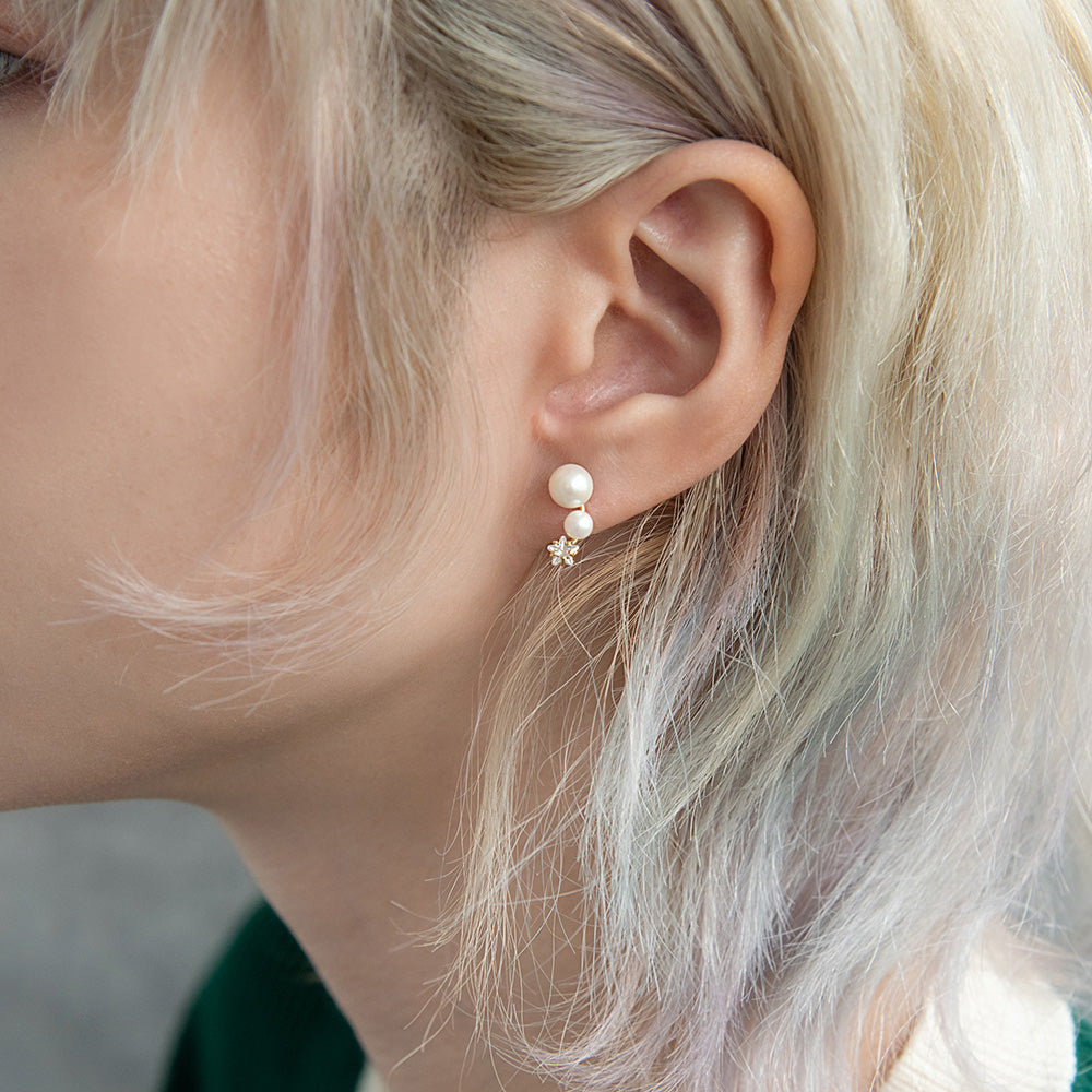 パールとスターモチーフのストーン輝くボディピアス。