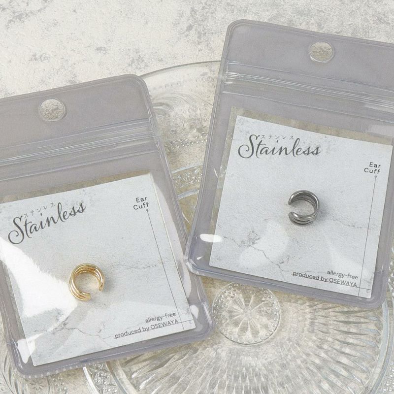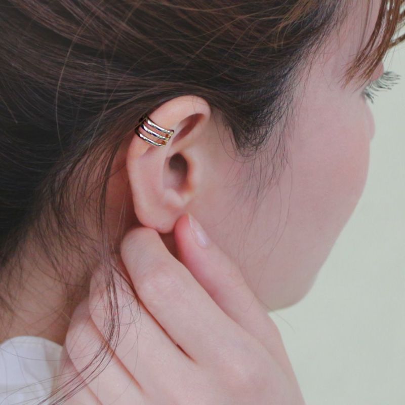 イヤーカフ ステンレス スリーライン イヤリング 【片耳用】
