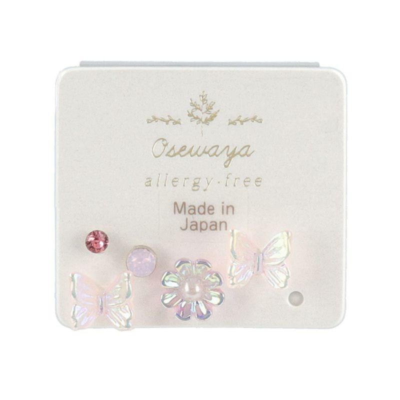 樹脂ピアス バタフライ フラワー オーロラ ストーン 5個セット ポストピアス