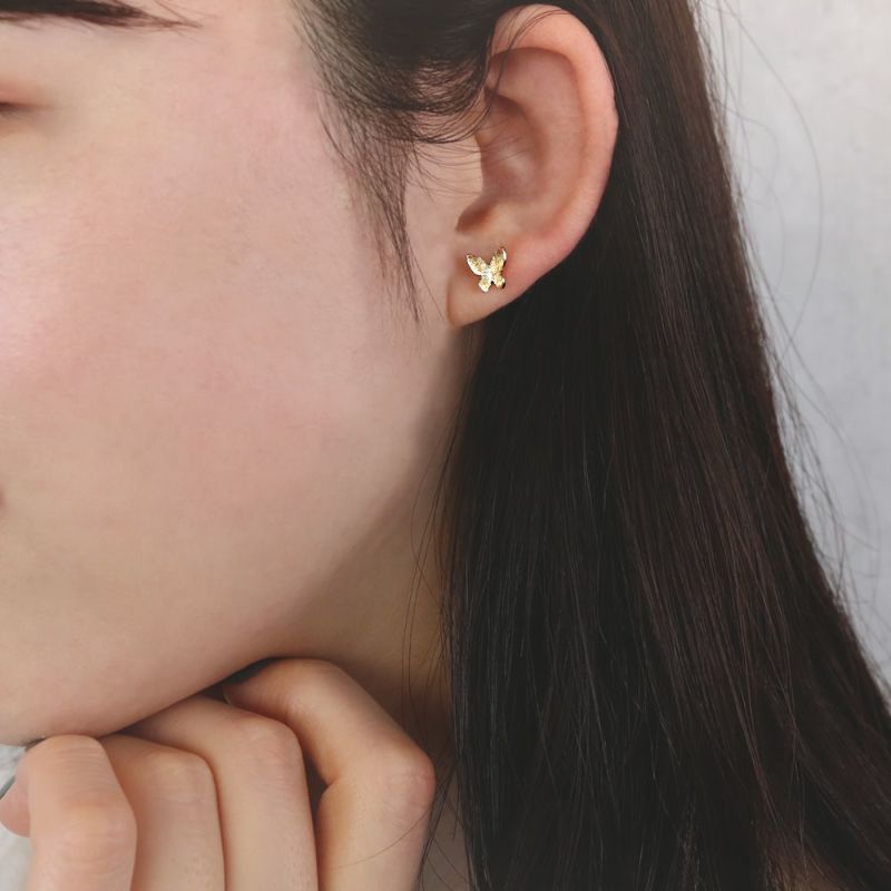人気の蝶モチーフとパールやストーンがセットになった樹脂ピアス。その日の気分でお好きな組み合わせが楽しめます。小さめサイズなのでデイリー使いにもお勧めです。