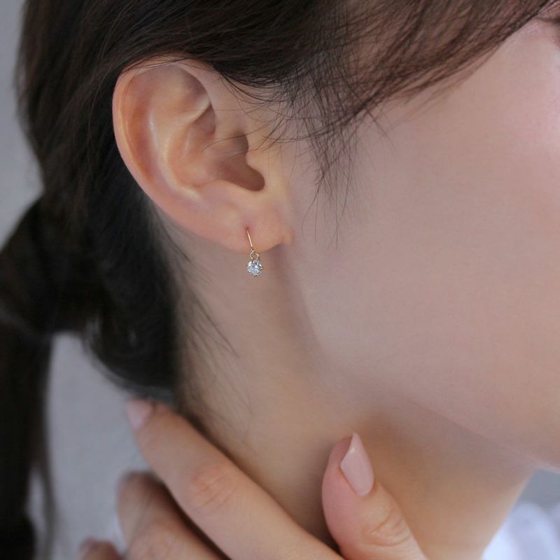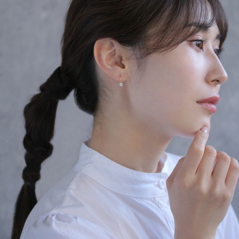 金属アレルギーが出にくい18金ポストで、お肌に優しい作りになっています。※すべての方に金属アレルギー反応が出ないこと(アレルギーフリー)を保証するものではございません。 皮膚に異常を感じた場合は直ちにご使用を中止し、専門医にご相談ください。