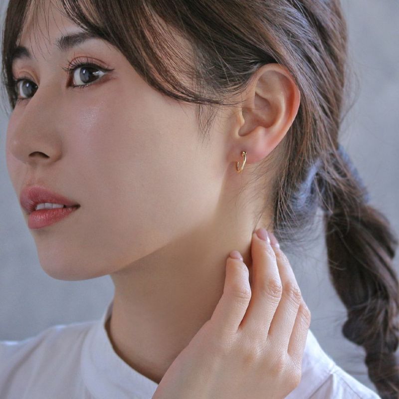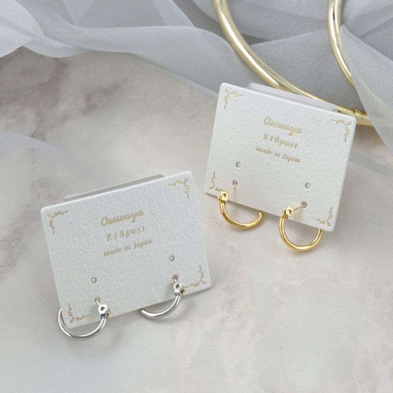 金属アレルギーが出にくい18金ポストで、お肌に優しい作りになっています。※すべての方に金属アレルギー反応が出ないこと(アレルギーフリー)を保証するものではございません。 皮膚に異常を感じた場合は直ちにご使用を中止し、専門医にご相談ください。